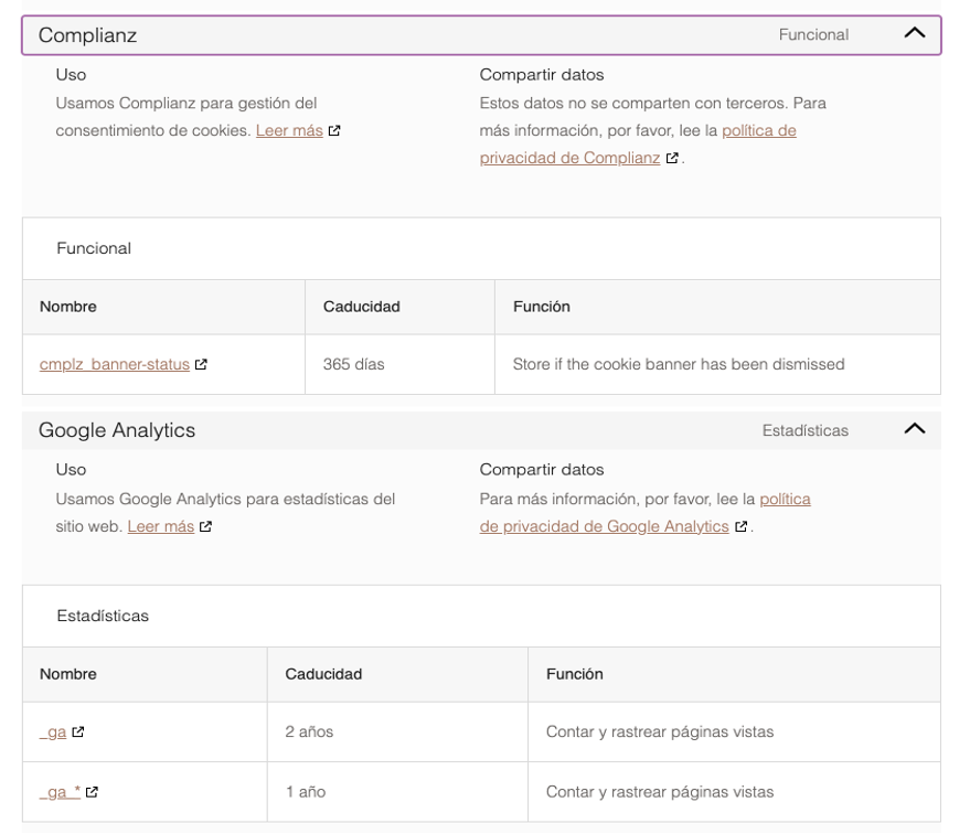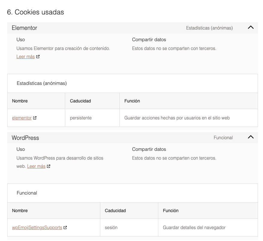 Tenga en cuenta que, si acepta las cookies de terceros, deberá eliminarlas desde las opciones del navegador o desde el sistema ofrecido por el propio tercero.